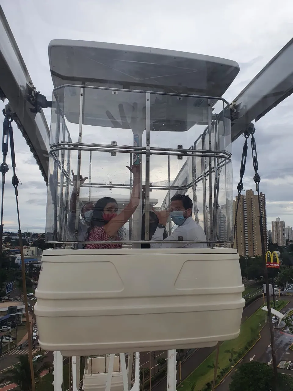 Aproveitando que a roda gigante está disponível em um Shopping da capital e segundo a mídia local: “A roda gigante de 22 metros de altura e 16 cabines” (Campo Grande News) “proporciona uma visão privilegiada da capital. Do alto da Roda Gigante dá para apreciar a paisagem da natureza do Parque das Nações Indígenas e a beleza da Afonso Pena, avenida que já é cartão postal da cidade. O brinquedo segue as regras de biossegurança tornando o passeio ainda melhor.” (http://www.uniderpfm.com.br/agenda/roda-gigante-a-mais-nova-atrao-para-lazer-no-shopping-campo-grande/12961)
